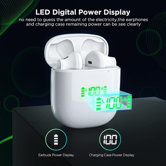 Premium Bluetooth Earbuds with LED Display, Wireless Charging, Smart Touch Control, 40H Playback, USB-C Charging, For Sports and Work