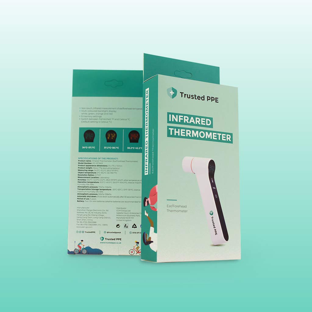 The Trusted PPE Fast Read Digital Thermometer is your all-in-one solution for fast, reliable temperature measurement. Featuring no-touch forehead and ear functionality, it's perfect for adults, children, and infants.