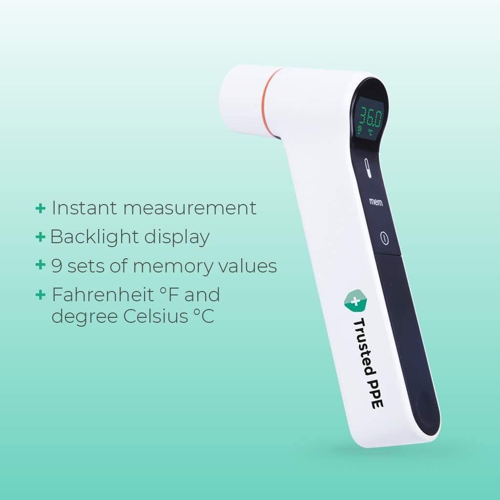 Trusted PPE Fast Read Digital Thermometer - No-Touch Forehead & Ear, Memory Mode, Instant Reading, Medical Grade Quality