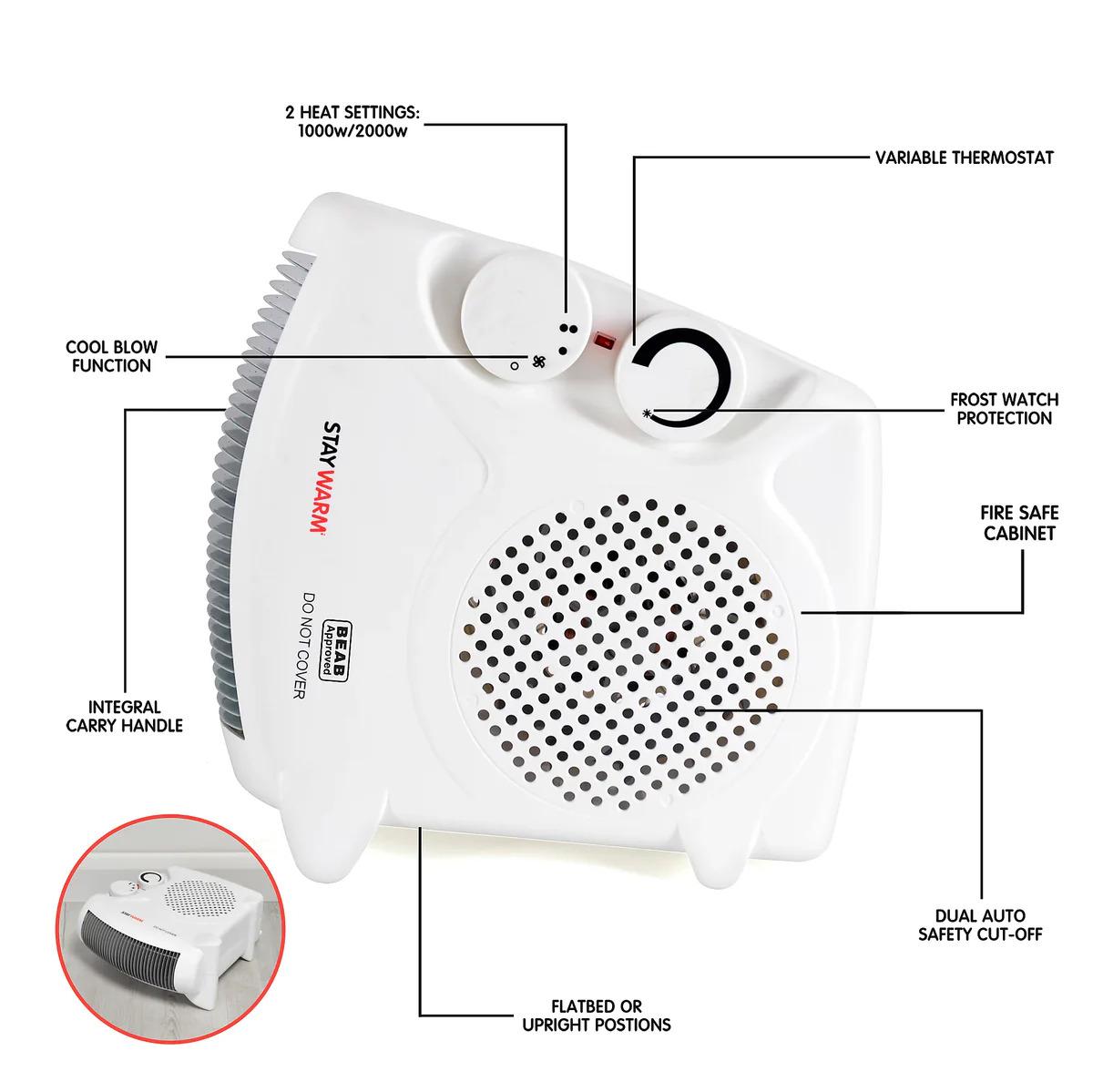 STAYWARM 2000w Fan Heater with 2 Heat Settings & Cool Blow - Upright & Flatbed